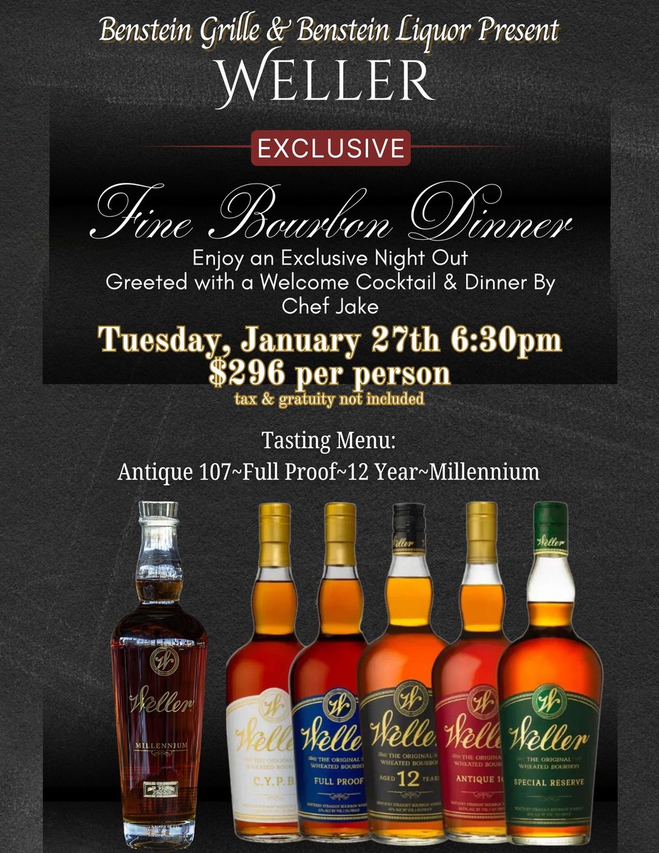 Benstein Grille & Benstein Liquor are bringing something truly special to the table with our Weller Exclusive Fine Bourbon Dinner—an intimate evening crafted for serious bourbon lovers.