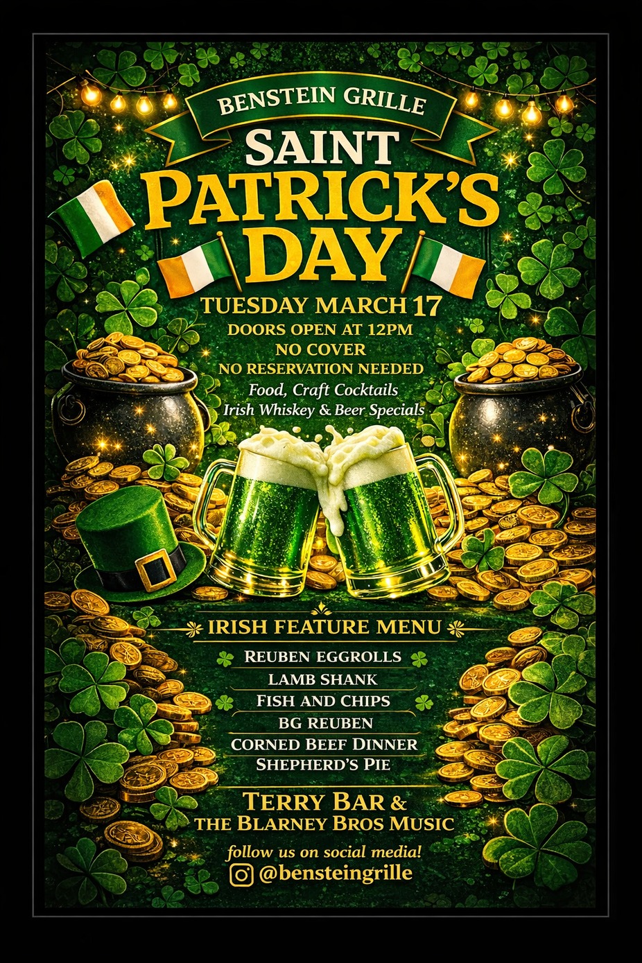 🍀 Celebrate St. Patrick’s Day at Benstein Grille! 🍀